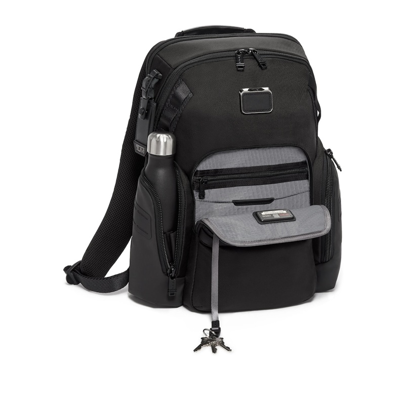 No styling, A Bolsa Mochila Alpha Bravo Business vai do denim à seda sem esforço — um curinga Tumi para hoje e sempre.
