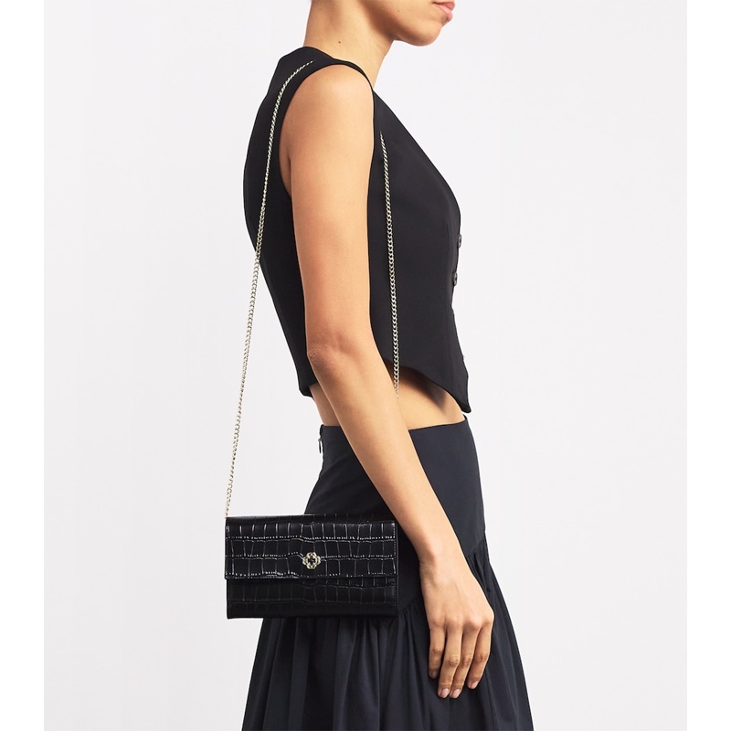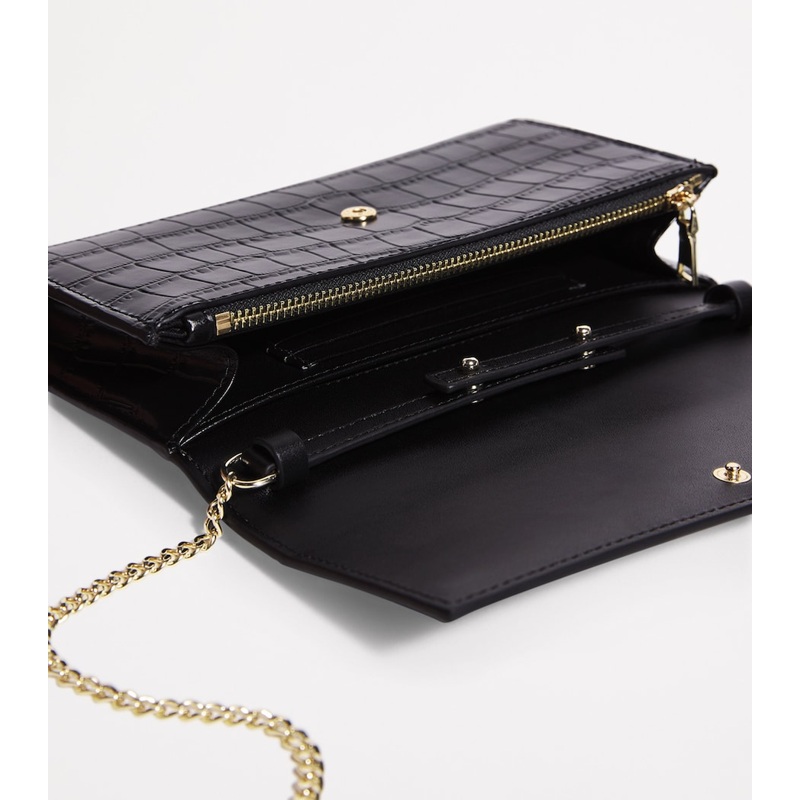 Maje eleva o cotidiano com esta wallet de apelo contemporâneo. A Bolsa Wallet Croc-Embossed Chain combina linhas precisas e proporções equilibradas para um efeito de luxo discreto.