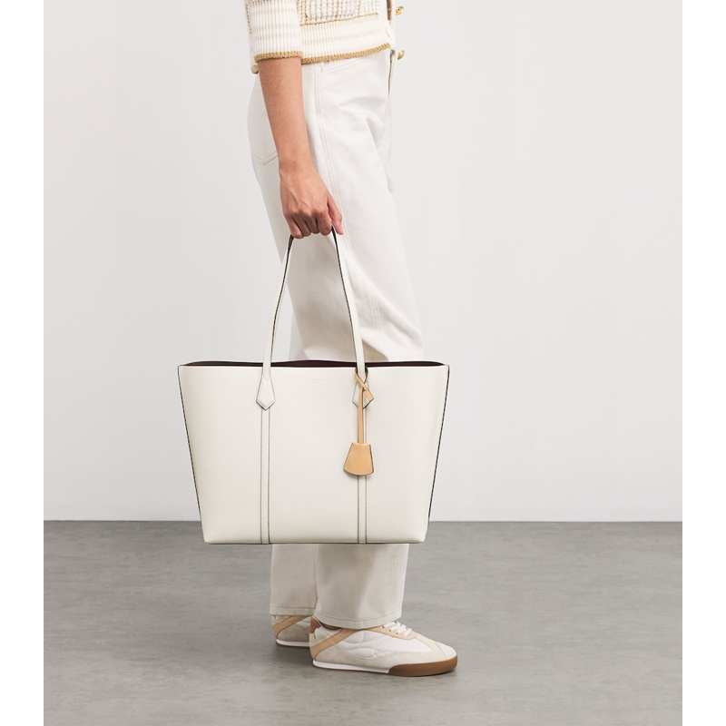 Assinada por Tory Burch, A Bolsa Tote Perry é uma tote de construção primorosa. Apresenta assinatura Double T.