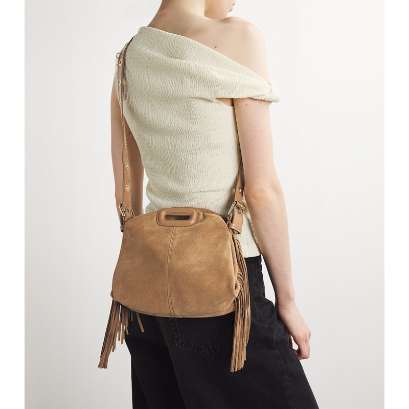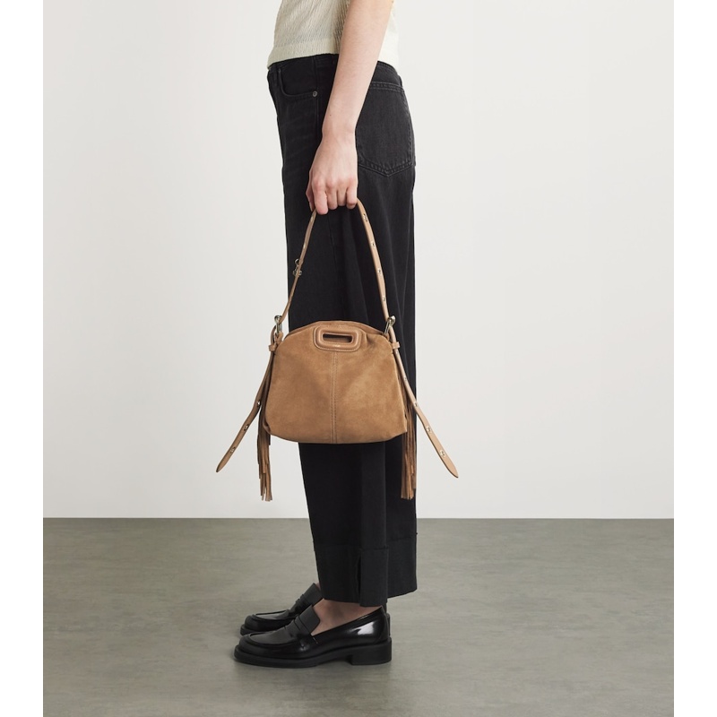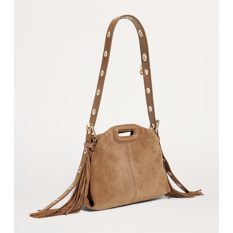 Maje eleva o cotidiano com esta shoulder de apelo contemporâneo. A Bolsa Shoulder Mini Suede Miss M combina linhas precisas e proporções equilibradas para um efeito de luxo discreto.