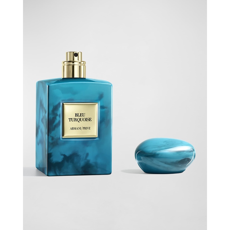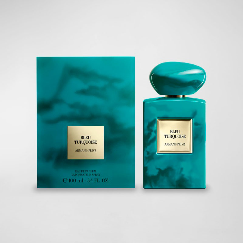Apresentado em um frasco único com uma tampa de resina fundida que evoca a pedra turquesa, este perfume é um convite visual e olfativo para explorar a união dos elementos. A embalagem, com seu design elegante, reforça a herança de luxo da Armani Beauty. Com Bleu Turquoise, a Armani Beauty convida você a mergulhar em uma fragrância que é tão mística quanto cativante.