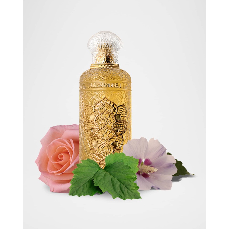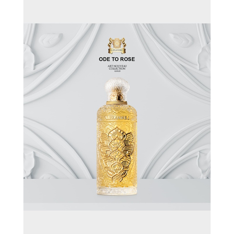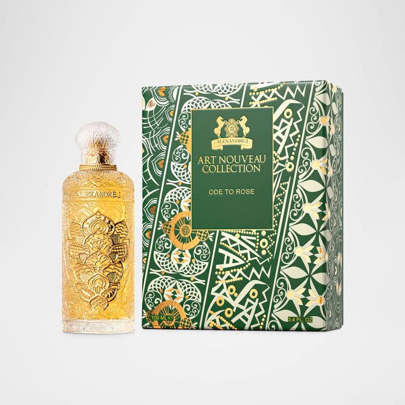 Apresentado em um frasco soprado à mão com padrões dourados e embalagem de seda e couro, este perfume é uma obra de arte visual e olfativa. O design luxuoso reforça a herança da marca em criar fragrâncias excepcionais. Com Ode to Rose, a Alexandre J convida você a explorar a beleza da rosa em uma fragrância inovadora e sofisticada.