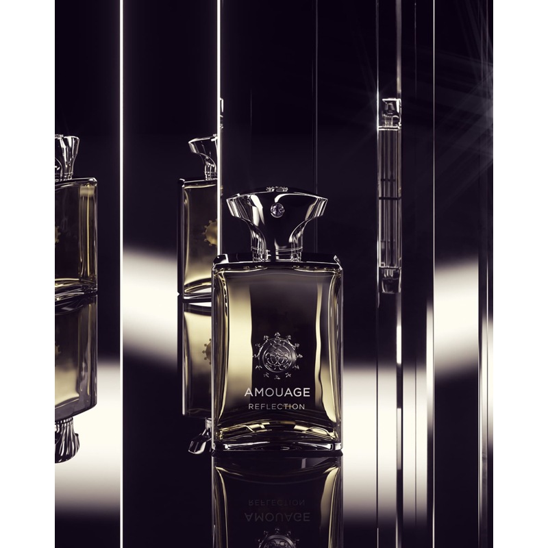 No coração, o neroli, íris, jasmim e ylang-ylang formam um buquê floral rico, que adiciona uma camada de suavidade e sofisticação à composição. A base de vetiver, patchouli, sândalo e cedro confere uma finalização amadeirada e envolvente, que perdura na pele com uma presença marcante. Reflection Man reflete a maestria da Amouage em criar fragrâncias que são ao mesmo tempo clássicas e impactantes.