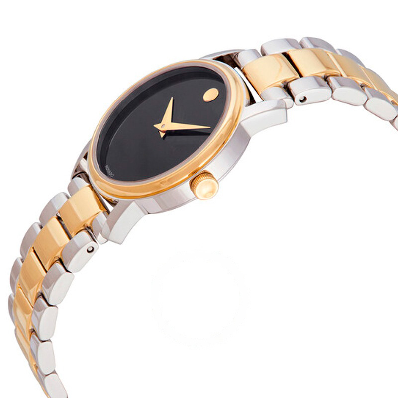 O Movado Museu Clássico Quartzo Mostrador Preto 29 mm é pensado para a vida real: elegante, atual e fiel à herança da manufatura. caixa em aço inoxidável, mostrador preto, 29 mm. Texturas bem resolvidas falam de precisão e cuidado à mão.