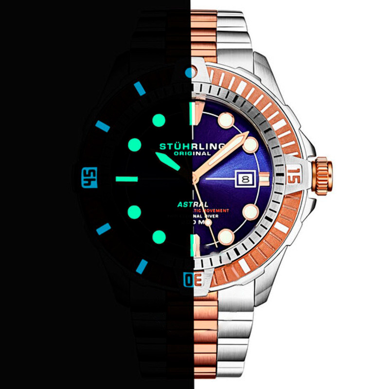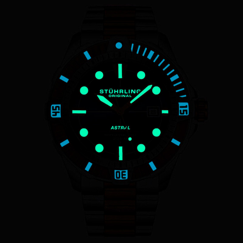 O Stührling Original Aquadiver Automático Mostrador Azul Design pensado para durar, com superfícies que capturam a luz com sutileza. Mostrador azul.