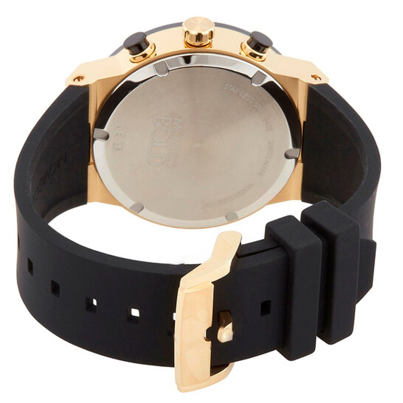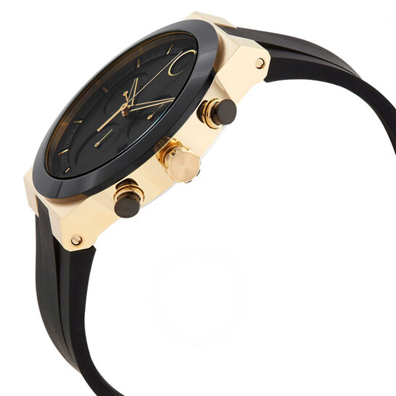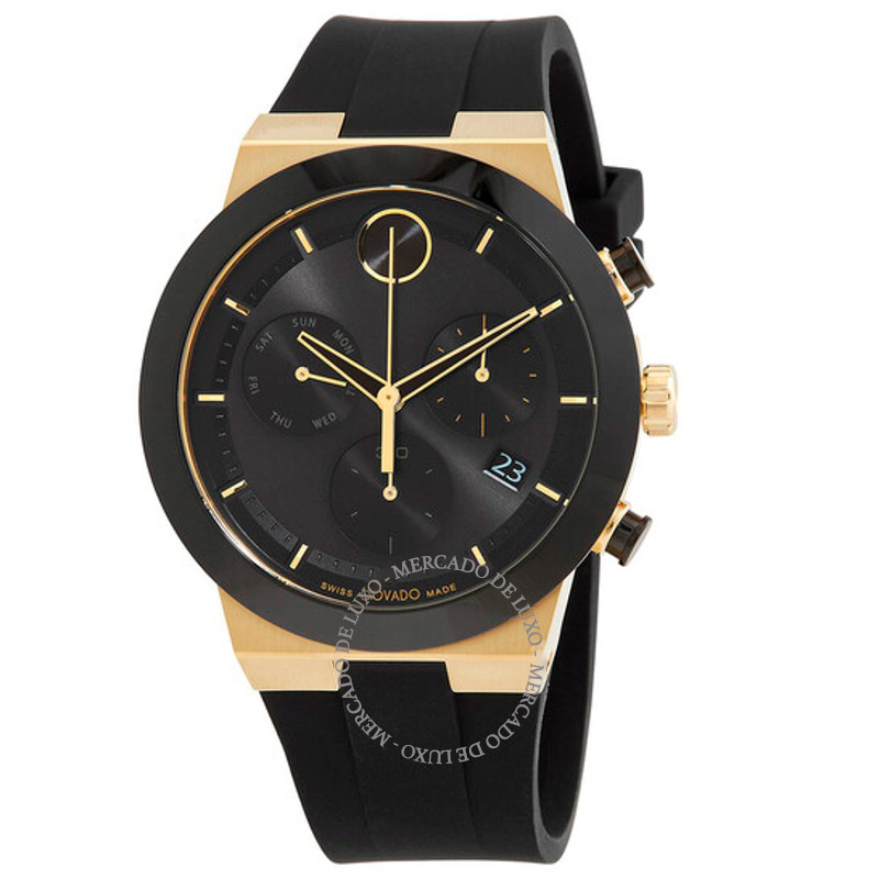 O Movado Bold Fusion Chronograph Quartz Black Dial 44 mm Interpreta os códigos da casa com serenidade e atenção à luz. Caixa em aço inoxidável, amarelo, cerâmica, Luneta cerâmica, Mostrador preto, 44 mm.
