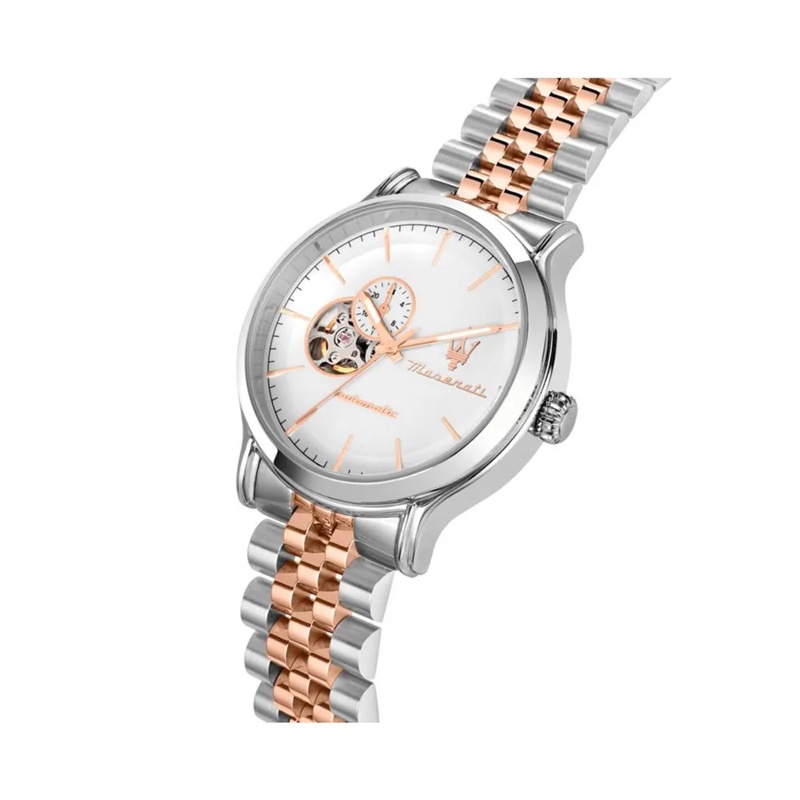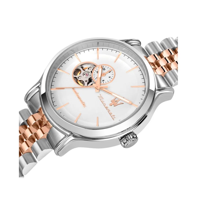 O Maserati Epoca traduz a linguagem da alta relojoaria com proporções impecáveis e acabamento de ateliê. Com caixa em aço inoxidável, entrega presença sofisticada e brilho discreto. Uma criação pensada para atravessar tendências com elegância.