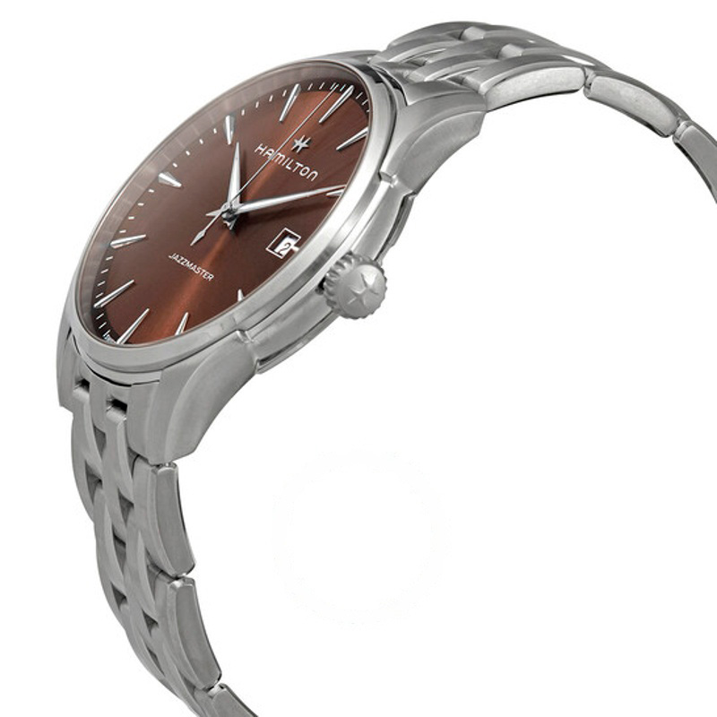 O Hamilton Watch Mostrador marrom de quartzo Jazzmaster 40 mm Interpreta os códigos da casa com serenidade e atenção à luz. Caixa em aço inoxidável, Mostrador prateado, 40 mm.