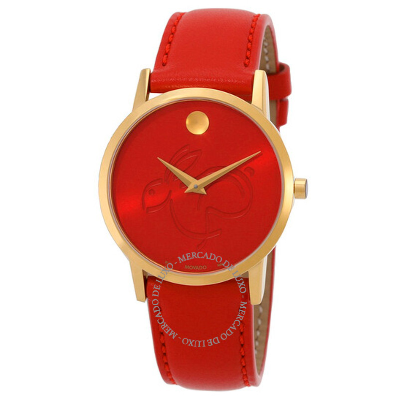 O Movado Museu Clássico Ano do Coelho Quartzo Mostrador Vermelho 0 33 mm equilibra superfícies polidas e escovadas para um jogo de luz refinado. 33 mm. Texturas bem resolvidas falam de precisão e...