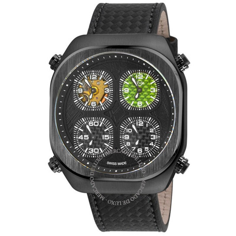 O Gv2 By Gevril Quattro Quartz Mostrador Preto 54 mm Equilibra herança e desenho atual em proporções bem resolvidas. Caixa em aço inoxidável, Mostrador preto, 54 mm.