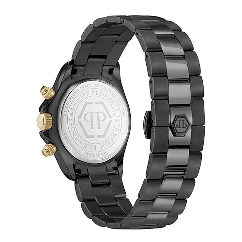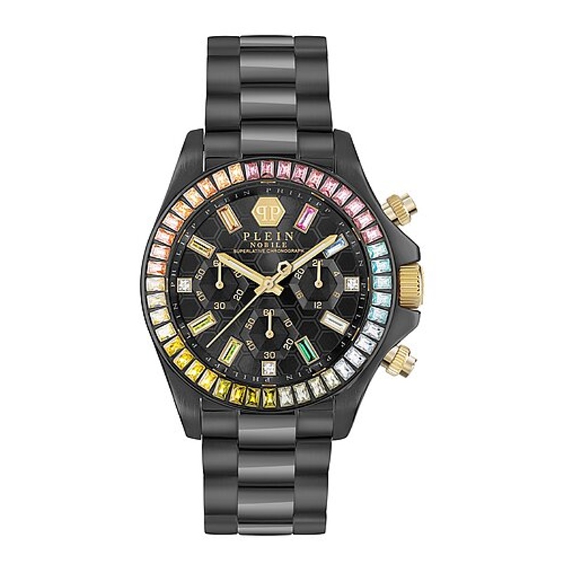 A atitude Philipp Plein em forma de relógio: volumes ousados, brilho e referências street-luxury para looks de impacto.