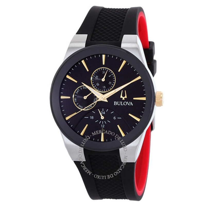 O Bulova Cronógrafo Millenia Moderno Quartzo Mostrador Preto 41 mm Aposta em linhas limpas e volume preciso — luxo que não grita. Mostrador preto, 41 mm.A arquitetura do mecanismo privilegia robustez...