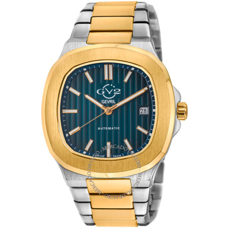 O Gv2 By Gevril Potente Automático Mostrador Azul 40 mm Aposta em linhas limpas e volume preciso — luxo que não grita. Caixa em aço inoxidável, amarelo, Mostrador azul, 40 mm.