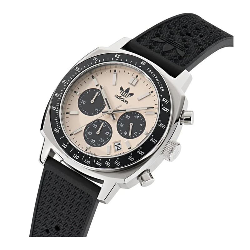 O Adidas Master Originals One Chrono traduz a linguagem da alta relojoaria com proporções impecáveis e acabamento de ateliê. Com caixa em aço inoxidável, mostrador preto, entrega presença sofisticada e brilho discreto. Uma criação pensada para atravessar tendências com elegância.