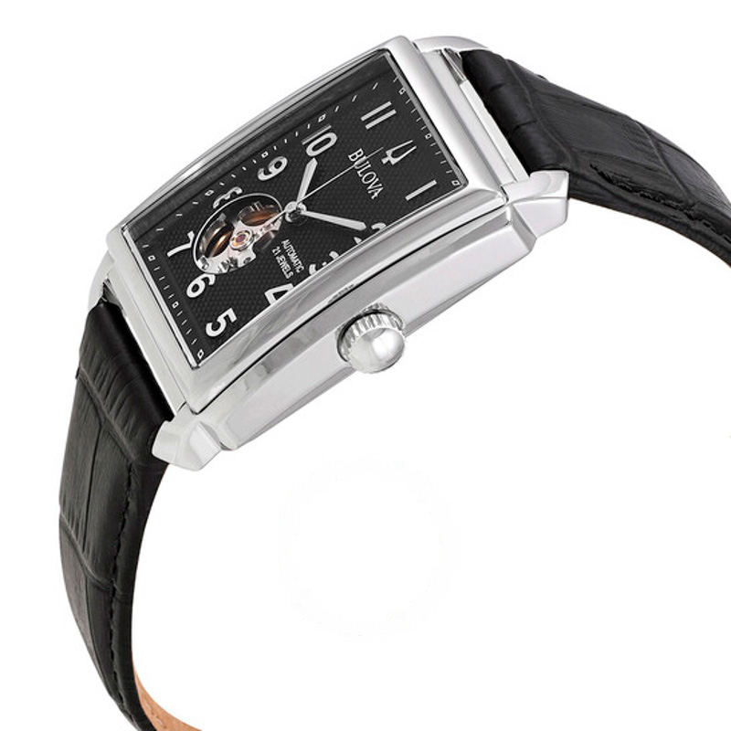 O Bulova Sutton Automático Mostrador Preto 49 mm Traz uma leitura arquitetônica do tempo com superfícies bem trabalhadas. Caixa em aço inoxidável, Mostrador preto, 49 mm.