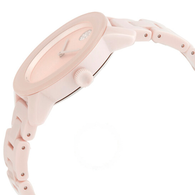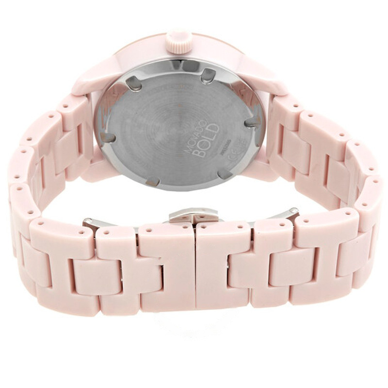 O Movado Mostrador rosa de quartzo em negrito 36 mm traz design de linhas limpas e presença silenciosa — o luxo que não precisa anunciar-se. 36 mm. Texturas bem resolvidas falam de precisão e cuidado à mão.