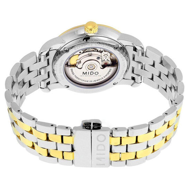 O Mido Baroncelli Jubilee Mostrador Branco 38 mm Interpreta os códigos da casa com serenidade e atenção à luz. Caixa em aço inoxidável, amarelo, Mostrador prateado, 38 mm.