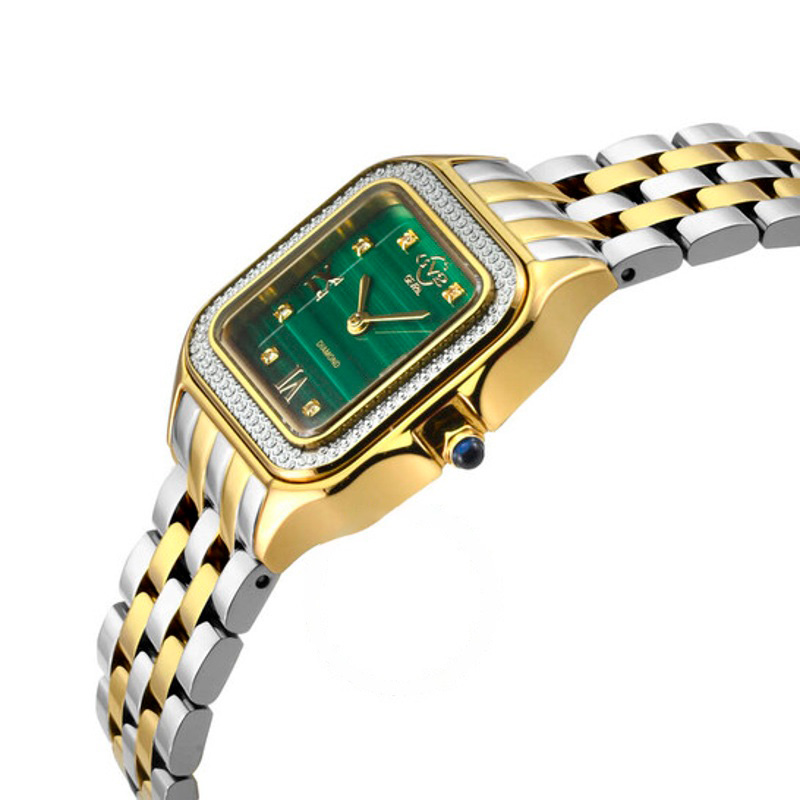 O Gv2 By Gevril Mostrador Milan Diamond Green revela um estudo de superfícies que alternam brilho e sobriedade. Com mostrador verde com, o conjunto ganha textura e profundidade.