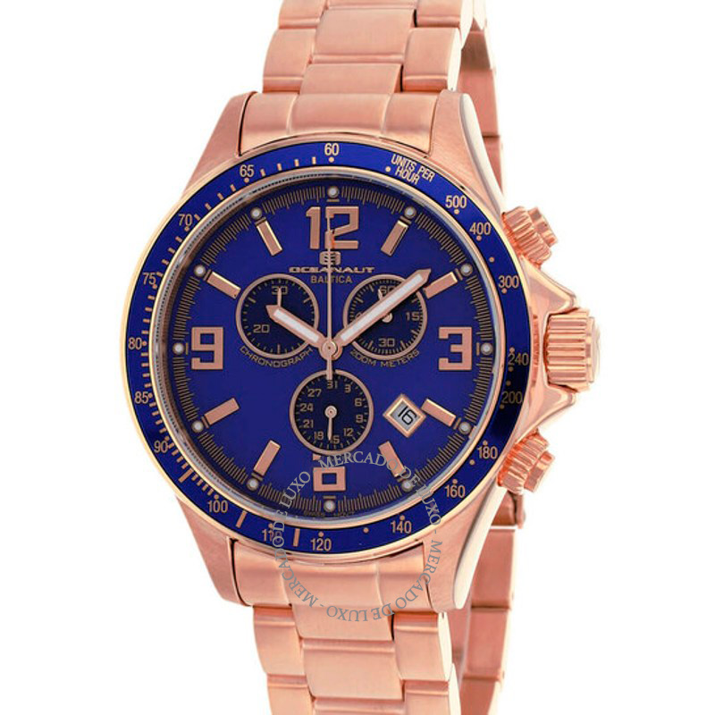 O Oceanaut Cronógrafo Baltica Quartzo Mostrador Azul 42 mm Traz uma leitura arquitetônica do tempo com superfícies bem trabalhadas. Caixa em aço inoxidável, rosa, Mostrador azul, 42 mm.