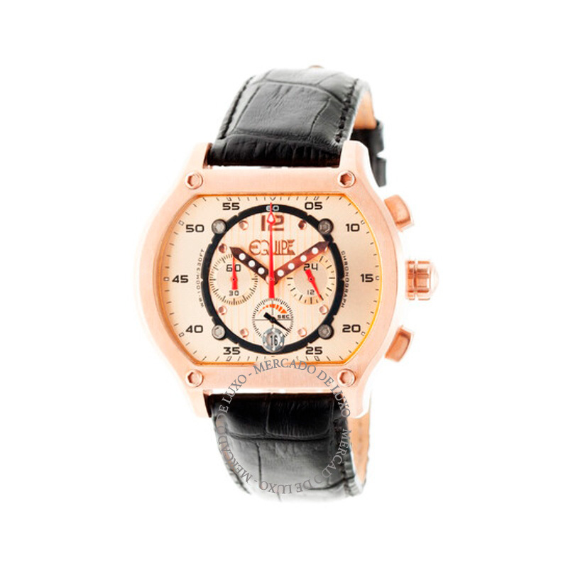 O Equipe Dash Chronograph Rose Dial 44 mm Traz uma leitura arquitetônica do tempo com superfícies bem trabalhadas. Caixa em aço inoxidável, rosa, Mostrador preto, 44 mm.