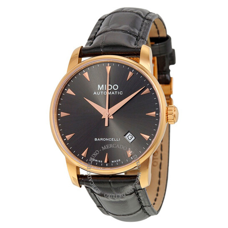 O Mido Baroncelli II Automático Mostrador Preto 38 mm Aposta em linhas limpas e volume preciso — luxo que não grita. Caixa em aço inoxidável, rosa, Mostrador preto, 38 mm.No coração, a mecânica suíça...
