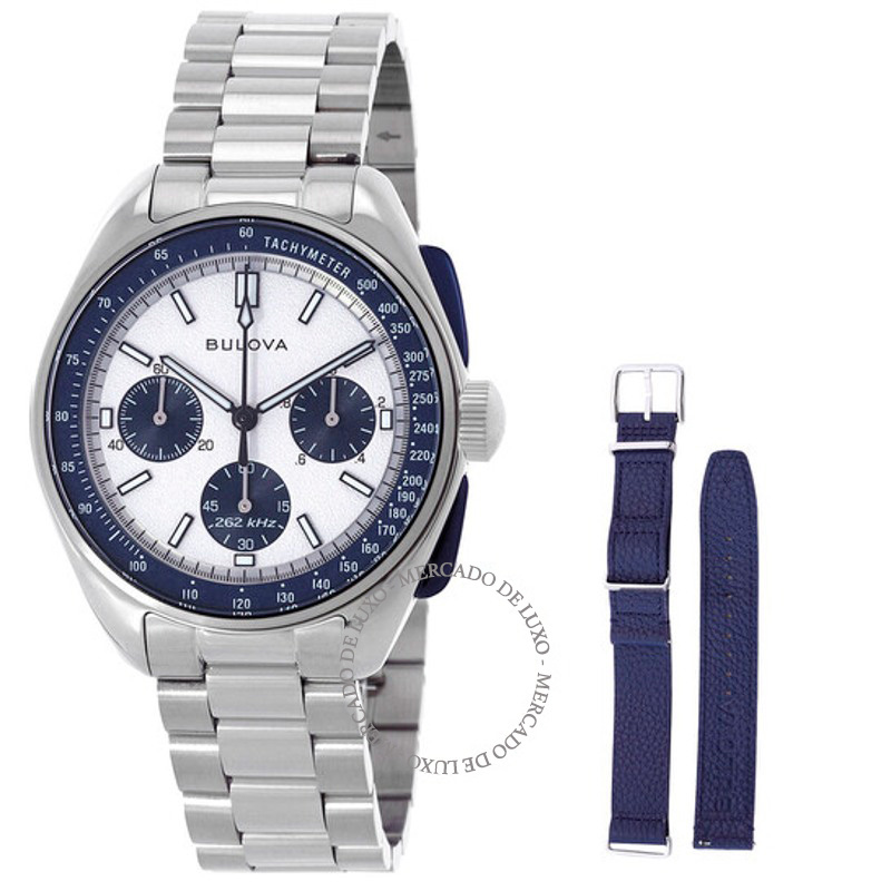 O Bulova Cronógrafo Lunar Pilot Archive Quartzo Mostrador Prata Traz uma leitura arquitetônica do tempo com superfícies bem trabalhadas.A arquitetura do mecanismo privilegia robustez estrutural e...
