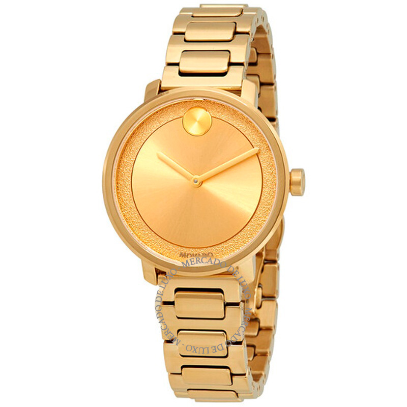 O Movado Mostrador em pálido ousado 34 mm traz design de linhas limpas e presença silenciosa — o luxo que não precisa anunciar-se. caixa em aço inoxidável, mostrador champagne, 34 mm. Texturas bem resolvidas falam de precisão e cuidado à mão.