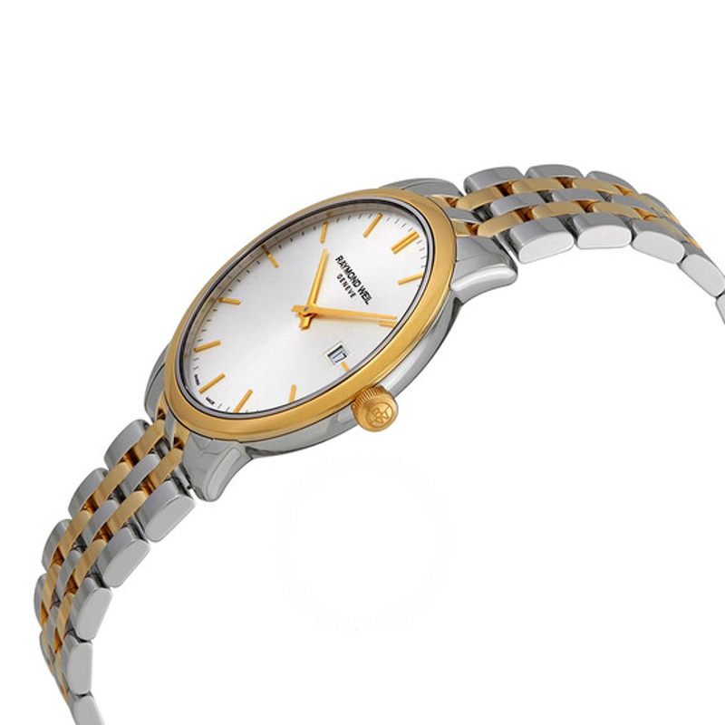 O Raymond Weil Toccata Classicouro Quartz Mostrador Prata 39 mm Traz uma leitura arquitetônica do tempo com superfícies bem trabalhadas. Caixa em aço inoxidável, amarelo, Mostrador prateado, 39 mm.