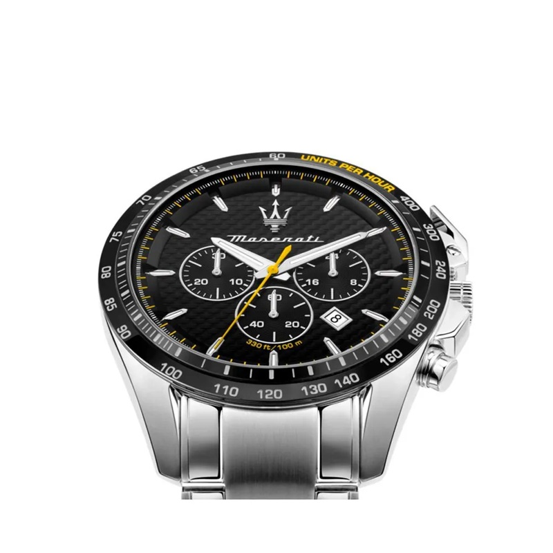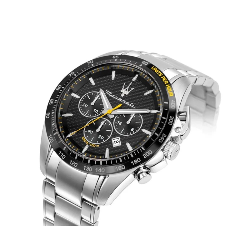 O Maserati Traguardo 45 mm traduz a linguagem da alta relojoaria com proporções impecáveis e acabamento de ateliê. Com caixa em aço inoxidável, tamanho 45 mm, entrega presença sofisticada e brilho discreto. Uma criação pensada para atravessar tendências com elegância.