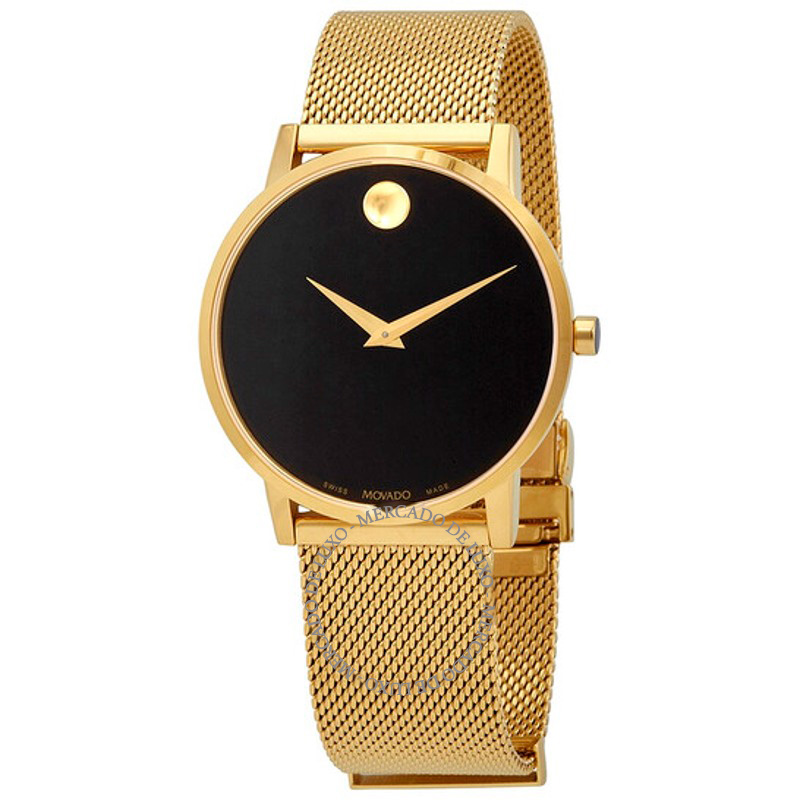 O Movado Mostrador preto de quartzo clássico de museu 40 mm Interpreta os códigos da casa com serenidade e atenção à luz. Caixa em aço inoxidável, amarelo, Mostrador preto, 40 mm.Tecnologia e...