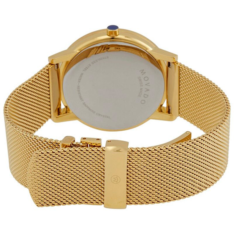 O Movado Mostrador preto de quartzo clássico de museu 40 mm Interpreta os códigos da casa com serenidade e atenção à luz. Caixa em aço inoxidável, amarelo, Mostrador preto, 40 mm.
