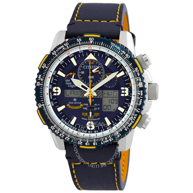 O Citizen Cronógrafo Promaster Skyhawk AT Perpetual Alarm 46 mm Sintetiza elegância, conforto e um toque de vanguarda. Caixa em a??o inoxidável, Mostrador azul, 46 mm.