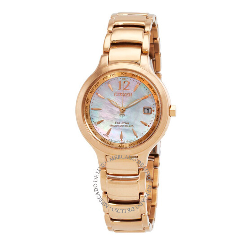 O Citizen Eco-Drive Perpetual World Time Mostrador em madrepérola celebra savoir-faire relojoeiro em um design de leitura imediata. mostrador madrepérola. Resultado visual com superfícies polidas e...