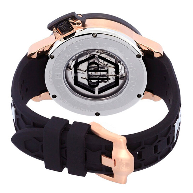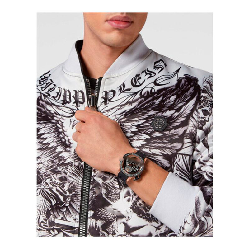 O Philipp Plein Hyper Sport Automático Cristal Mostrador Preto 46 mm Interpreta os códigos da casa com serenidade e atenção à luz. Mostrador preto, 46 mm.