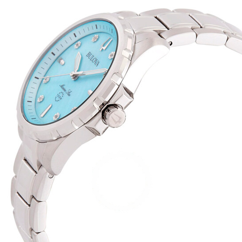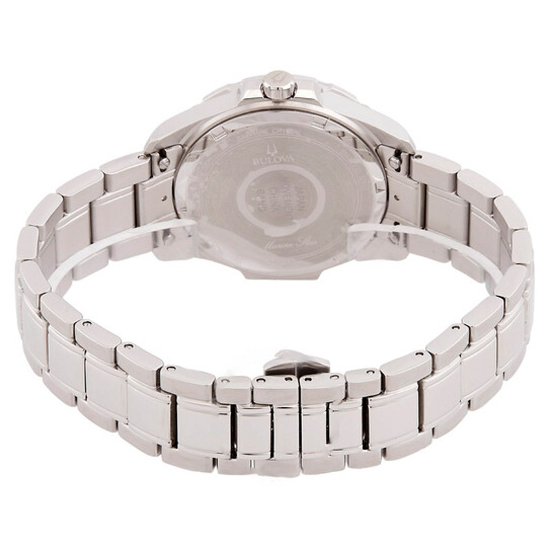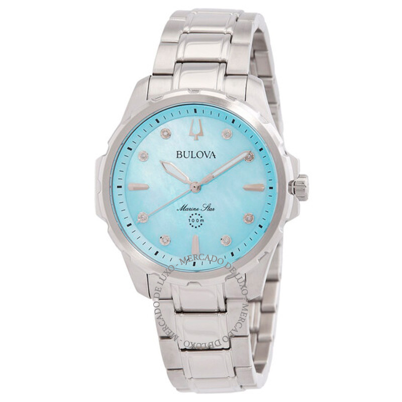O Bulova Mostrador azul de quartzo Marine Star apresenta um estudo de volumes, texturas e reflexos digno de vitrine. mostrador azul. Resultado visual com faces facetadas e arestas suaves.Tecnologia e...