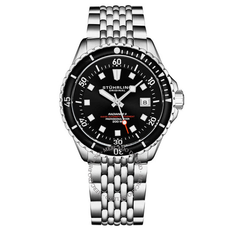 O Stührling Original Depthmaster Automático Mostrador Preto Traz uma leitura arquitetônica do tempo com superfícies bem trabalhadas. Mostrador preto.No coração, a mecânica suíça é regulada para...