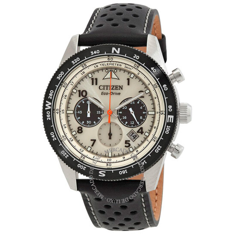 O Citizen Cronógrafo Eco-Drive Mostrador Branco 43 mm Traz uma leitura arquitetônica do tempo com superfícies bem trabalhadas. Caixa em aço inoxidável, Mostrador preto, 43 mm.