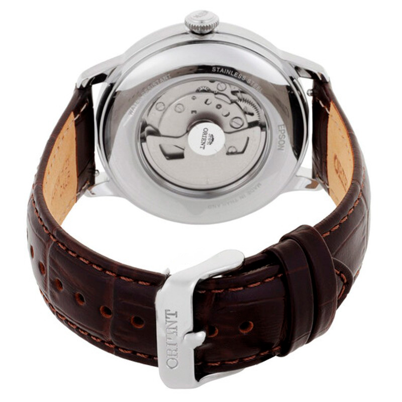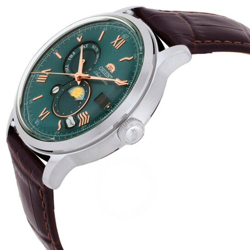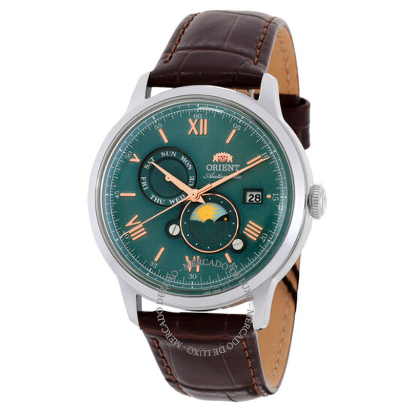 O Orient Mostrador verde clássico automático dia-noite 41 mm Interpreta os códigos da casa com serenidade e atenção à luz. Caixa em aço inoxidável, rosa, Mostrador prateado, 41 mm.
