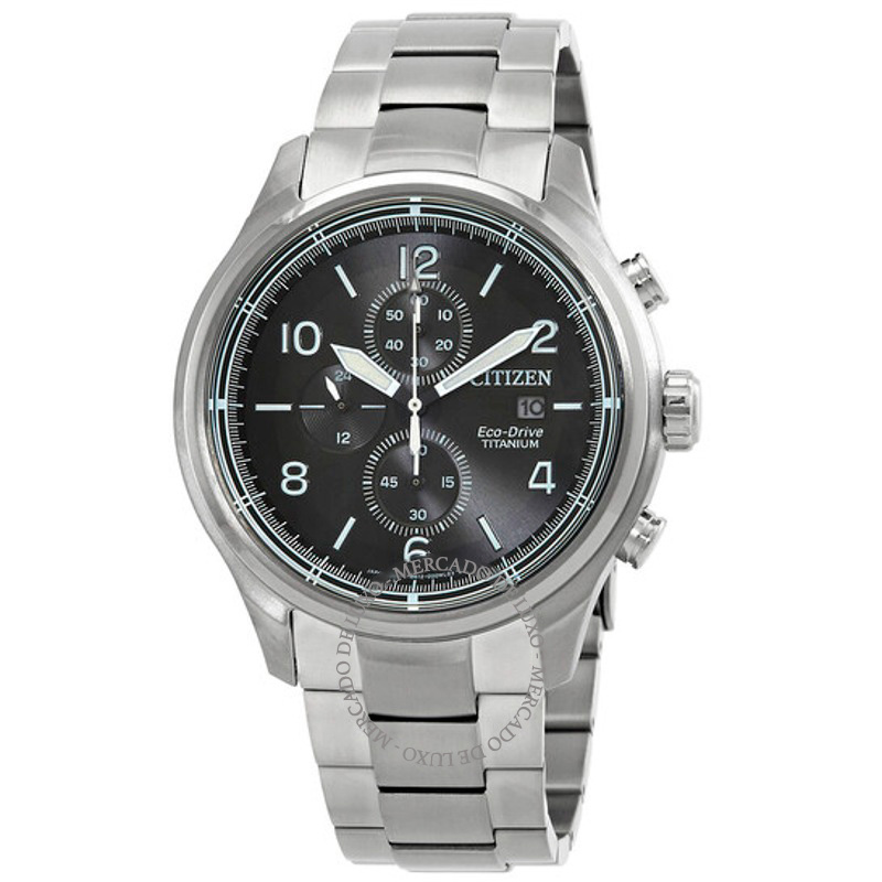 O Citizen Cronógrafo Eco-Drive Mostrador Preto 44 mm Equilibra herança e desenho atual em proporções bem resolvidas. Caixa em titânio, Mostrador preto, 44 mm.