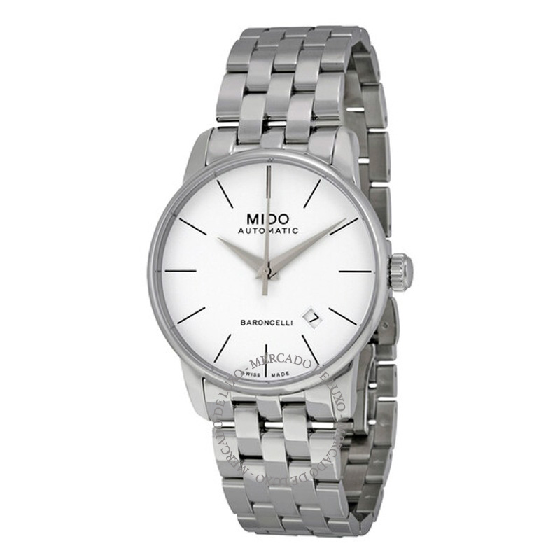 O Mido Baroncelli Automático Mostrador Branco 38 mm Equilibra herança e desenho atual em proporções bem resolvidas. Caixa em aço inoxidável, Mostrador prateado, 38 mm.A manufatura calibra o movimento...