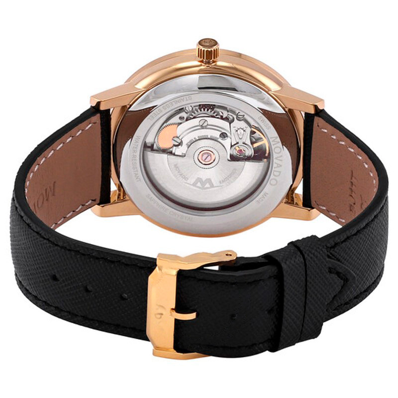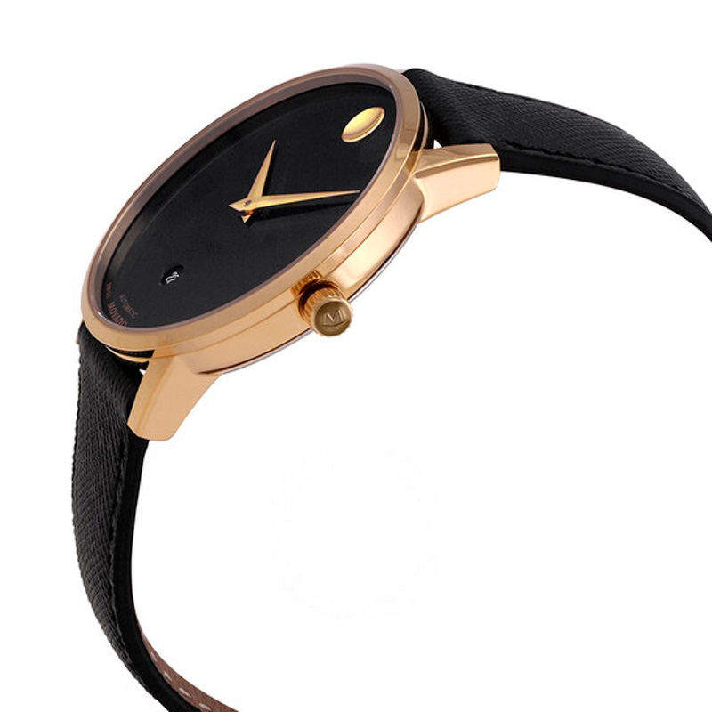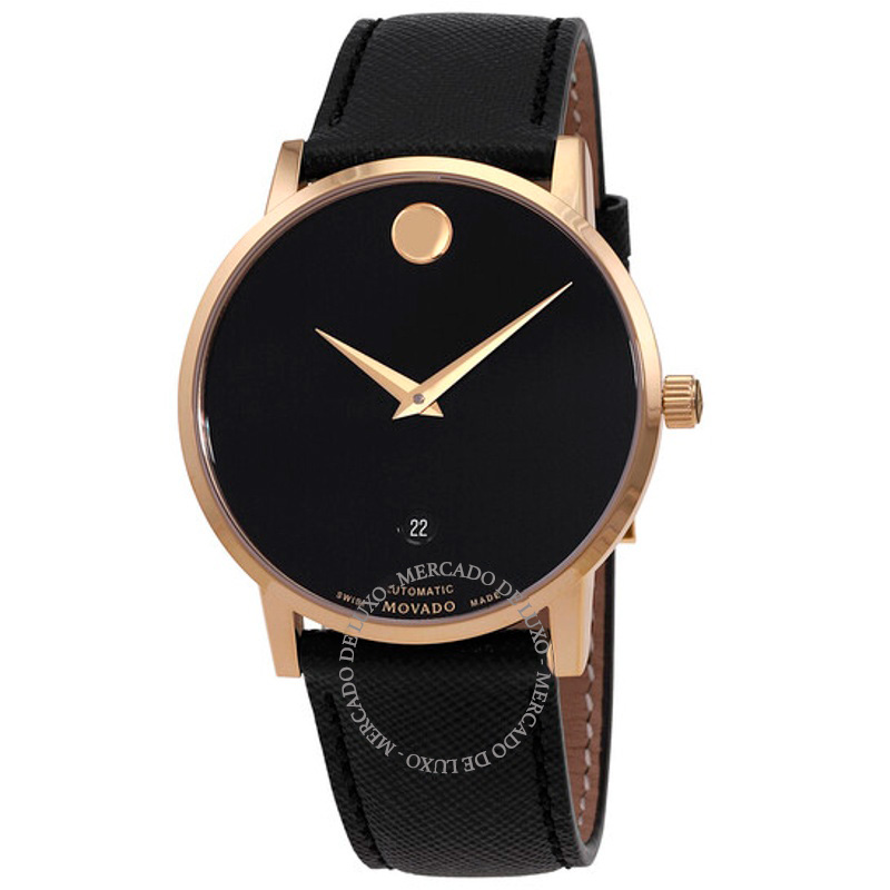 O Movado Museu Clássico Automático Mostrador Preto 40 mm Equilibra herança e desenho atual em proporções bem resolvidas. Caixa em aço inoxidável, amarelo, Mostrador preto, 40 mm.