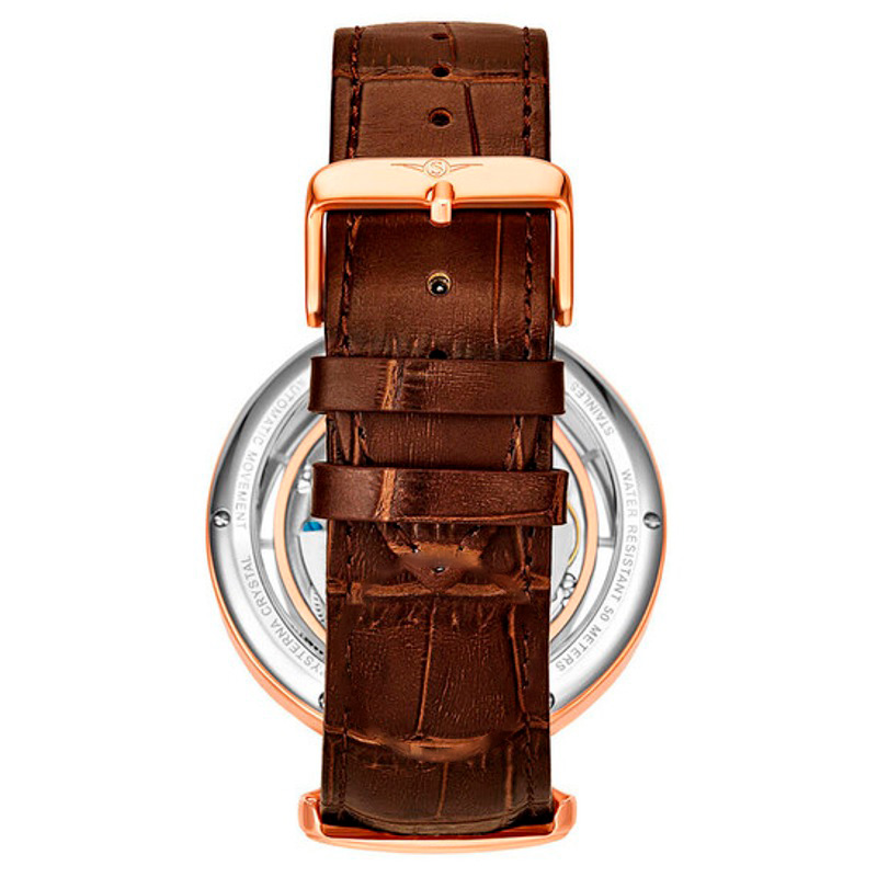 O Stührling Original Legacy Automaticouro Rose Gold Dial 49 mm Mistura precisão geométrica e brilho contido em um gesto refinado. Caixa em rosa, Mostrador preto, 49 mm.