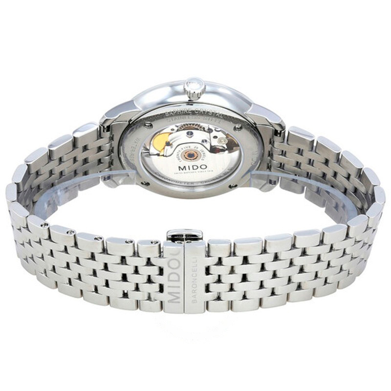 O Mido Baroncelli III Automático 40 mm Sintetiza elegância, conforto e um toque de vanguarda. Caixa em aço inoxidável, Mostrador preto, 40 mm.No coração, a mecânica suíça é regulada para estabilidade...