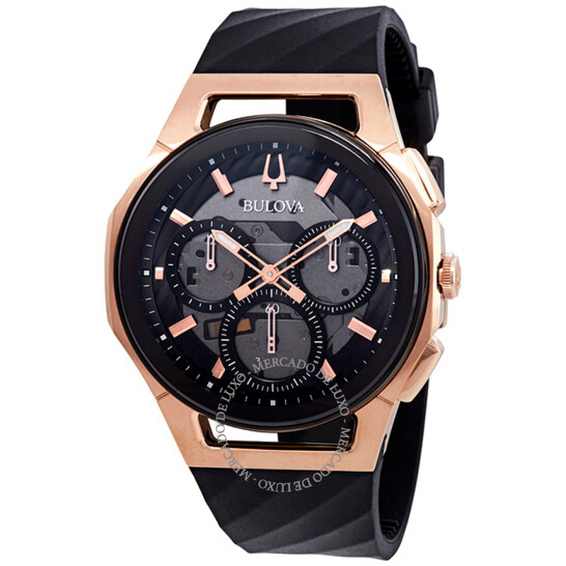 O Bulova Cronógrafo Curvo Mostrador Preto Interpreta os códigos da casa com serenidade e atenção à luz. Mostrador preto.A arquitetura do mecanismo privilegia robustez estrutural e regularidade de...