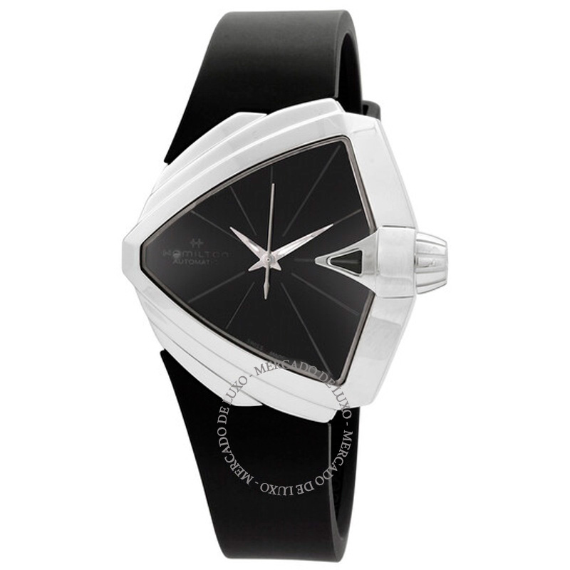 O Hamilton Watch Ventura Automático Mostrador Preto 38 mm Sintetiza elegância, conforto e um toque de vanguarda. Caixa em aço inoxidável, Mostrador preto, 34.5 x 38 mm.