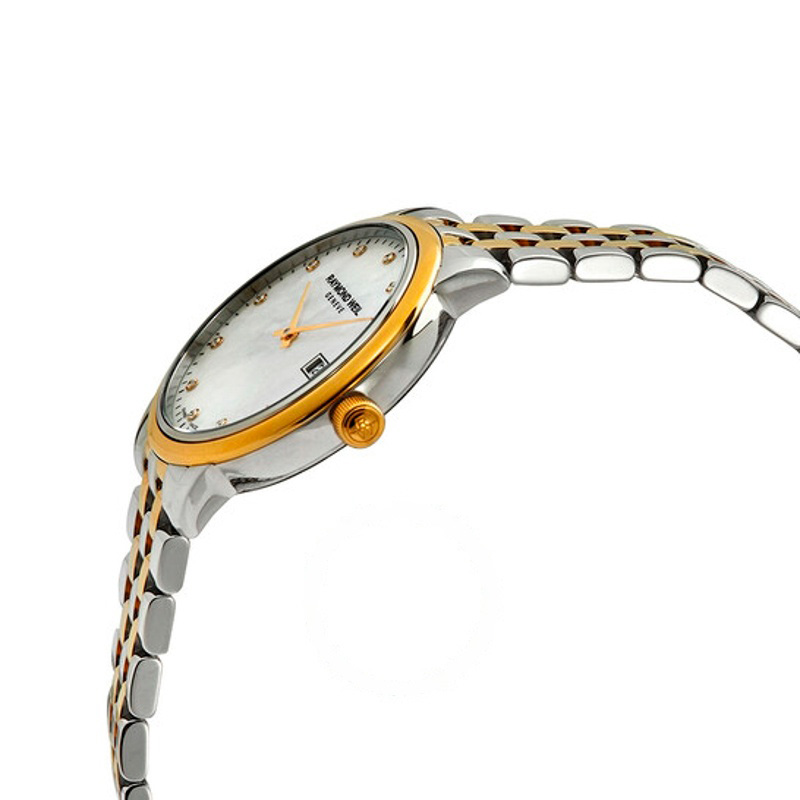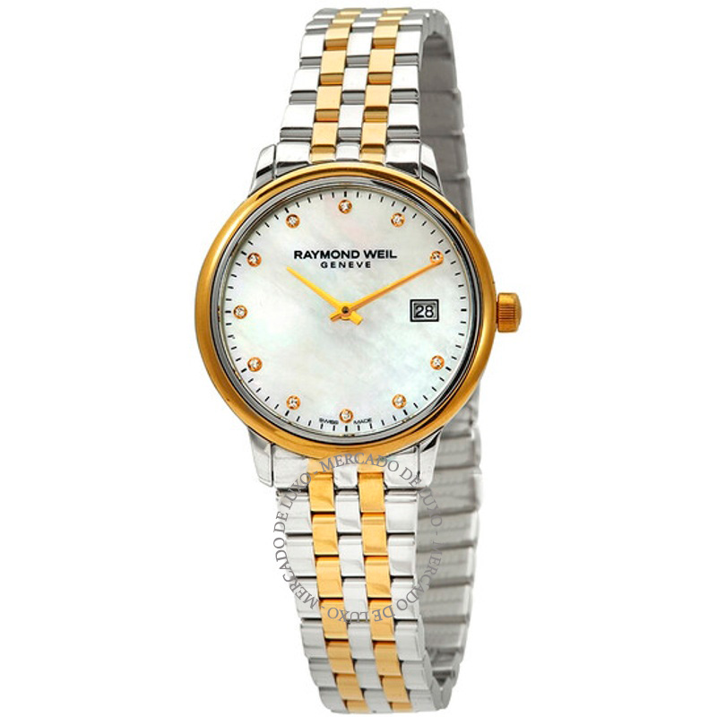 O Raymond Weil Mostrador Toccata Quartz Diamond White Madrepérola 29 mm trabalha reflexos e texturas em um desenho que respeita a ergonomia. caixa em aço inoxidável, amarelo, luneta cravejada de, mostrador madrepérola com, 29 mm. Acabamentos de alto padrão evidenciam o trabalho de bancada.