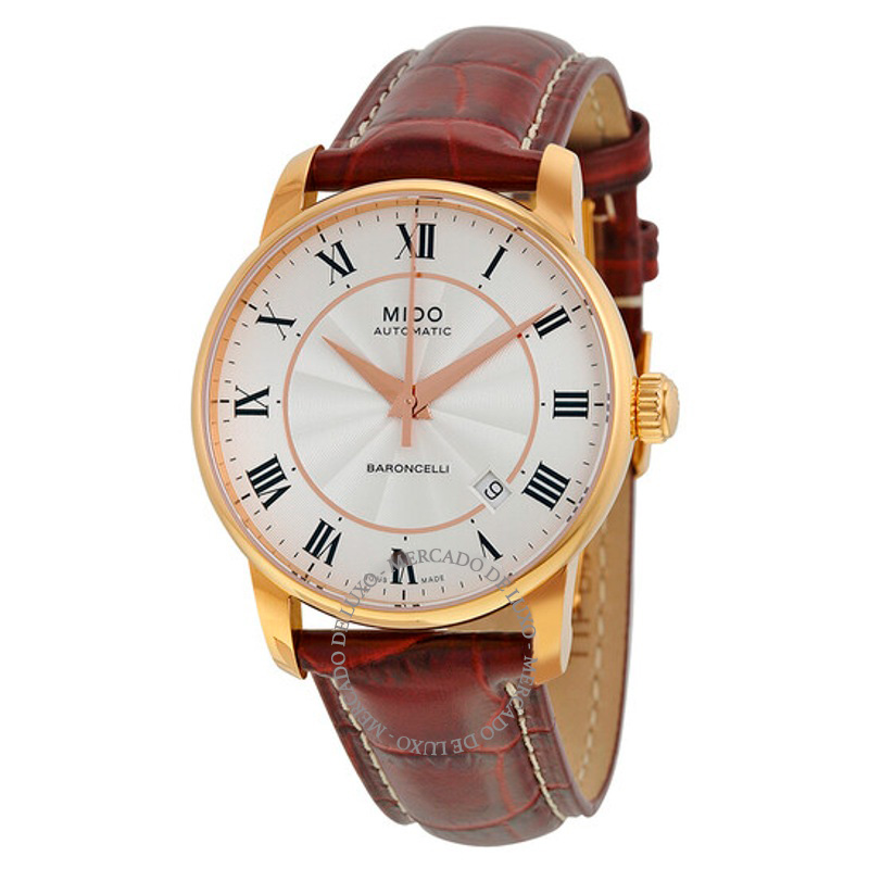 O Mido Mostrador prateado Baroncelli 38 mm Sintetiza elegância, conforto e um toque de vanguarda. Caixa em aço inoxidável, rosa, Luneta lisa, Mostrador prateado, 38 mm.