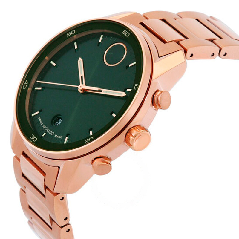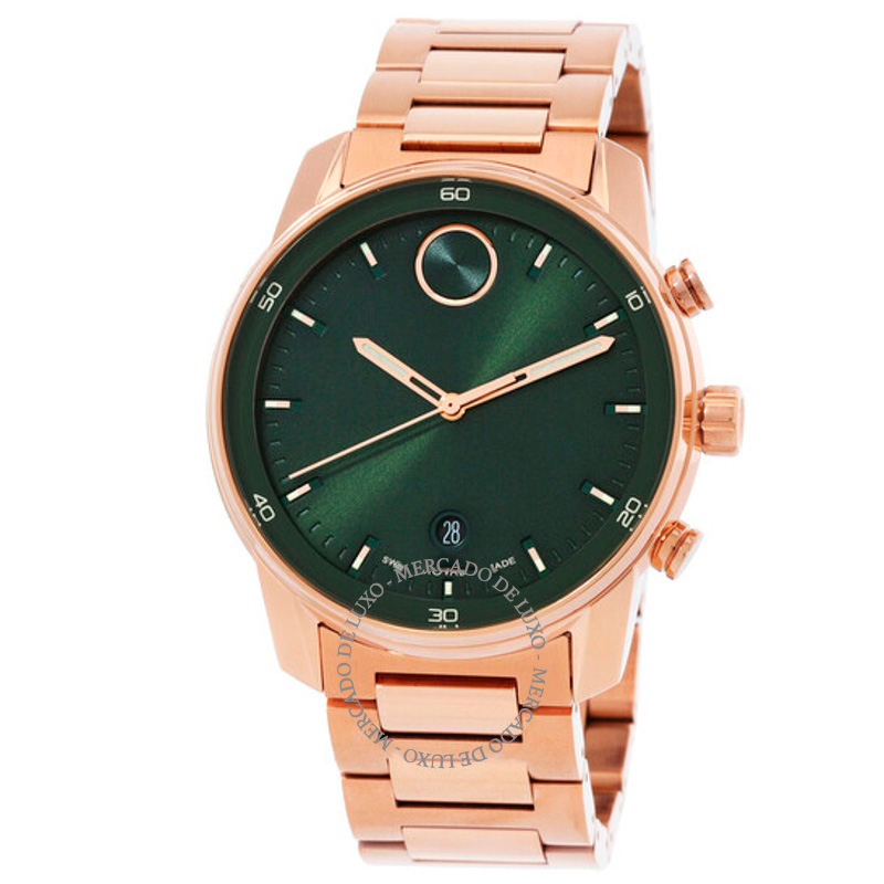O Movado Mostrador Bold Verso Quartz Green 42 mm Sintetiza elegância, conforto e um toque de vanguarda. Caixa em aço inoxidável, rosa, Mostrador verde, 42 mm.No coração, a mecânica suíça é regulada...