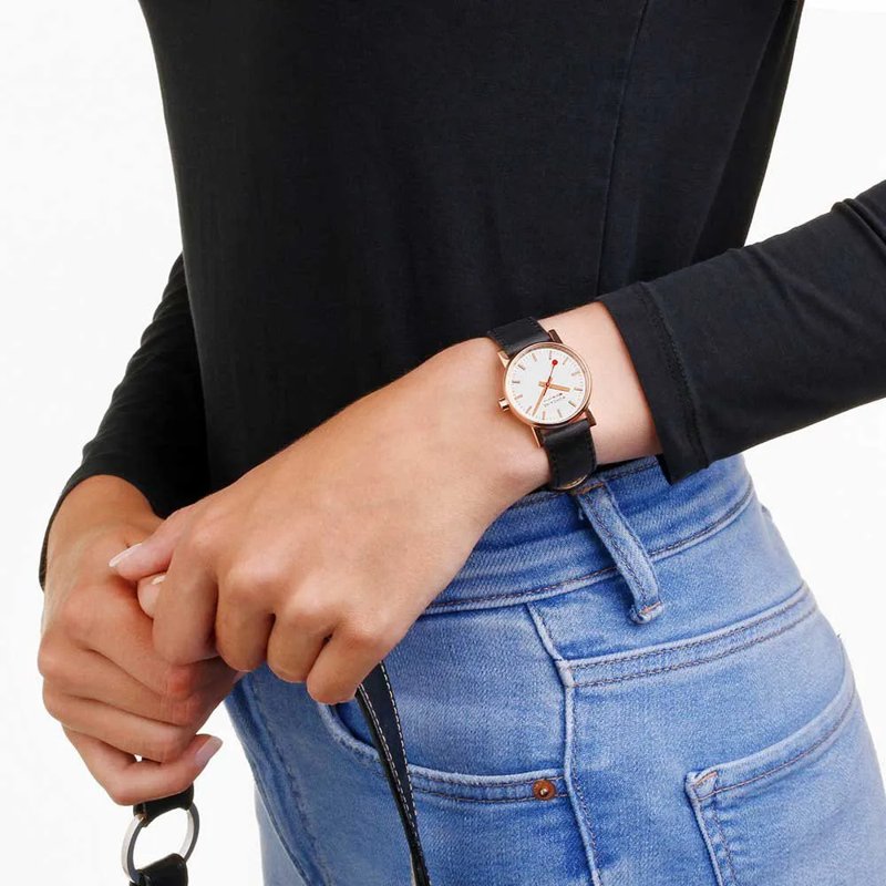 O Mondaine Evo2 Rose Gold 30 mm traduz a linguagem da alta relojoaria com proporções impecáveis e acabamento de ateliê. Com caixa em aço inoxidável, rosa, mostrador champagne, tamanho 30 mm, entrega presença sofisticada e brilho discreto. Uma criação pensada para atravessar tendências com elegância.