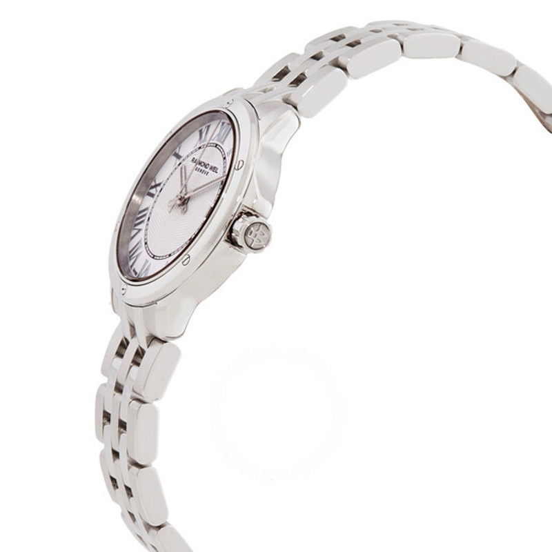O Raymond Weil Tango Quartz Mostrador Branco 28 mm propõe uma leitura contemporânea de elegância, sem exageros. caixa em aço inoxidável, mostrador prateado, 28 mm. Acabamentos de alto padrão evidenciam o trabalho de bancada.